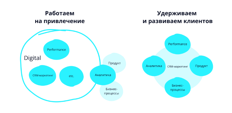 Есть и другой подход. Если рассматривать CRM-маркетинг как основу всей digital-стратегии, данные о клиентах начинают работать шире – они помогают строить performance-кампании, управлять SMM и даже влиять на продуктовую разработку. Такой подход показывает, насколько высока лояльность аудитории, дает понимание клиентского поведения и напрямую отражается на росте выручки.