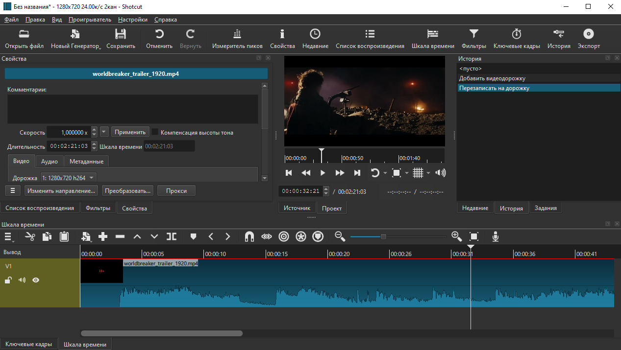 Эта бесплатная программы для монтажа видео на ПК находится на уровне DaVinci Resolve. Вы можете использовать его бесплатно для работы над личными проектами без ограничений по времени. Однако максимальное разрешение ролика ограничено 720p и доступен только формат MP4. Также разработчики ограничили доступ к эквалайзеру и другим профессиональным инструментам для работы со звуком для бесплатной версии.