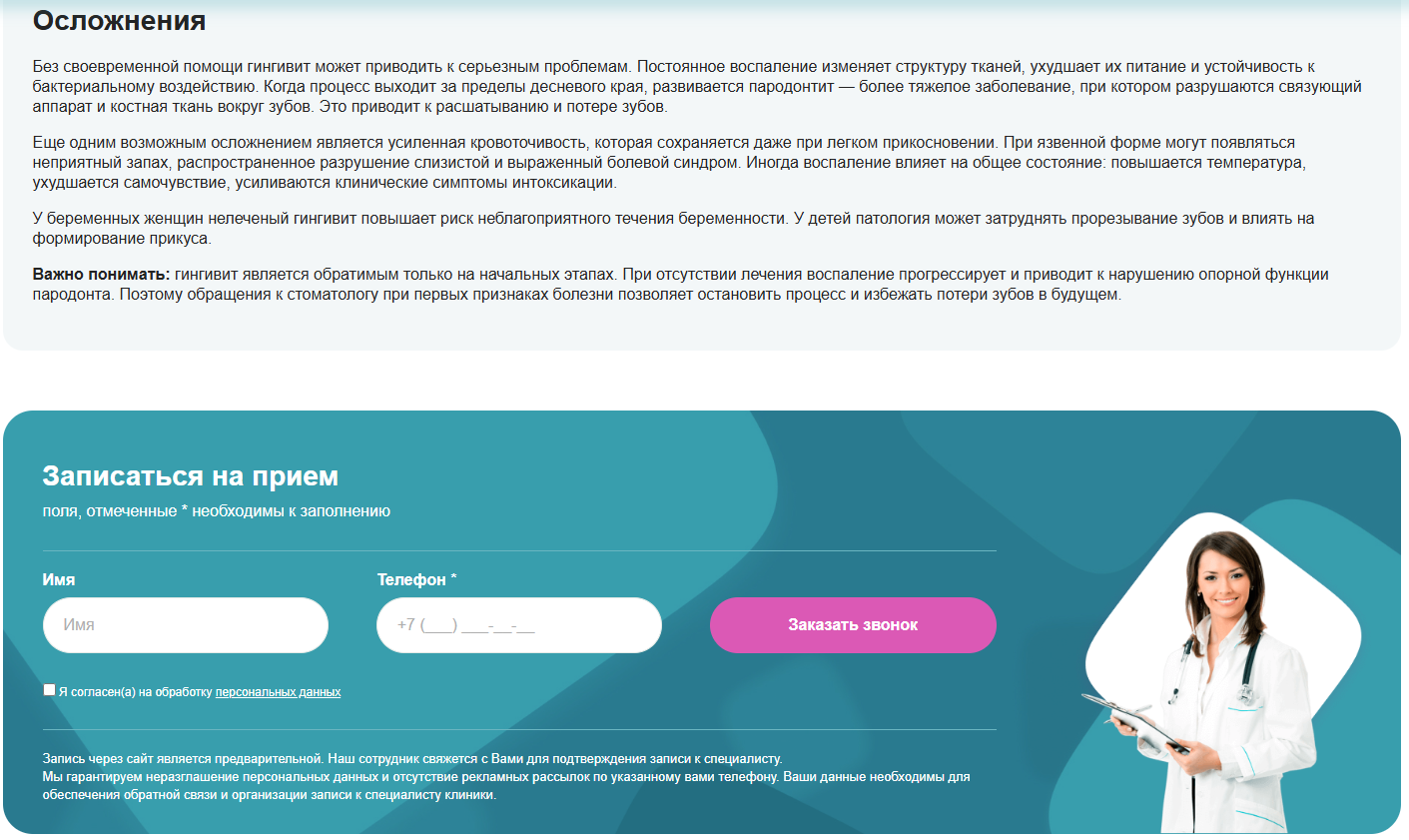 Подробные профили врачей. У каждого специалиста необходима отдельная страница с описанием специализации, опыта работы и образования. Желательно разместить копии дипломов, сертификатов о повышении квалификации и другие подтверждающие документы. Это усиливает SEO (поисковую оптимизацию) медицинского сайта за счет прозрачности и снижает риски по YMYL (ваши деньги или ваша жазнь).